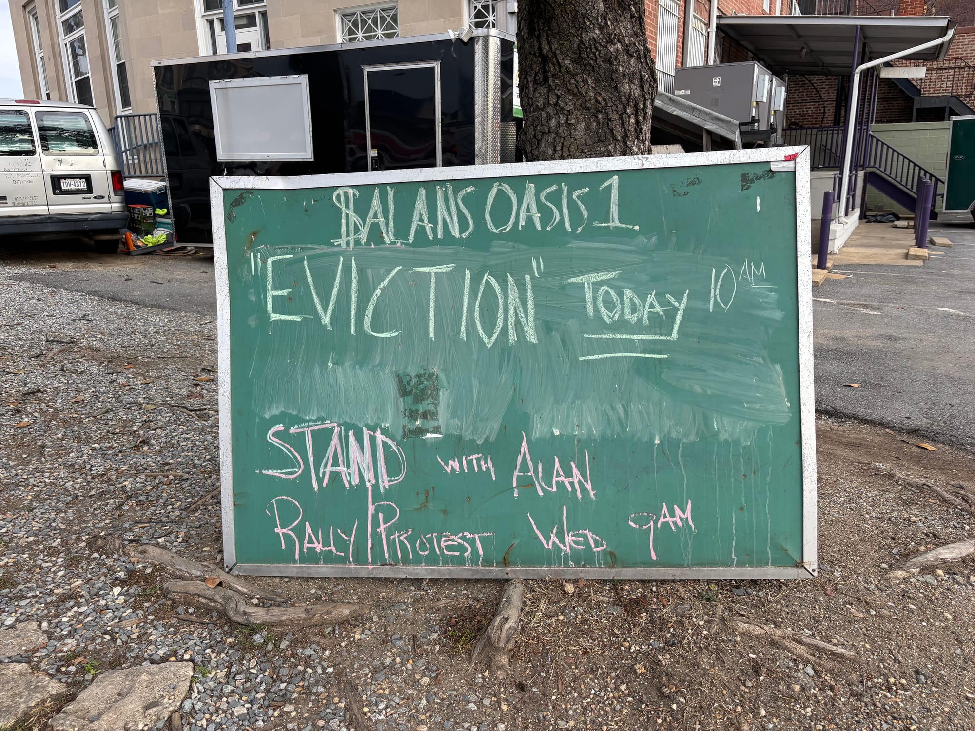 In the months since, Alan has continued to run the oasis while struggling to find housing. In the fall, he was living in a tent on a gas station's property — the owner let him live there because he acted as a security guard at night — but he said he had to leave when the company found out.