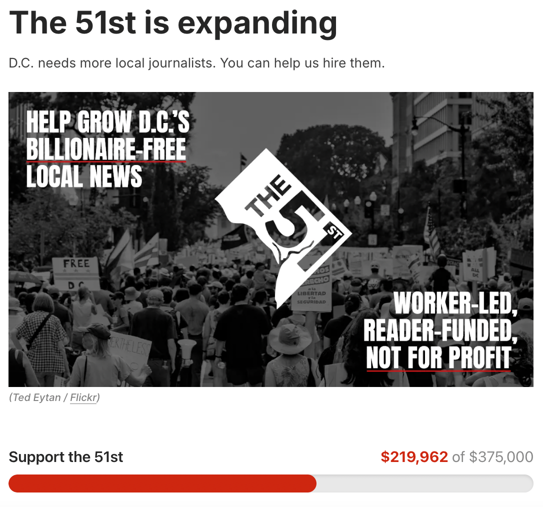It's no surprise that funding for local news has shifted drastically in the last decade, and we're committed to finding creative and values-aligned ways to grow and sustain our newsroom, by D.C. for D.C. As always, let us know what you think!