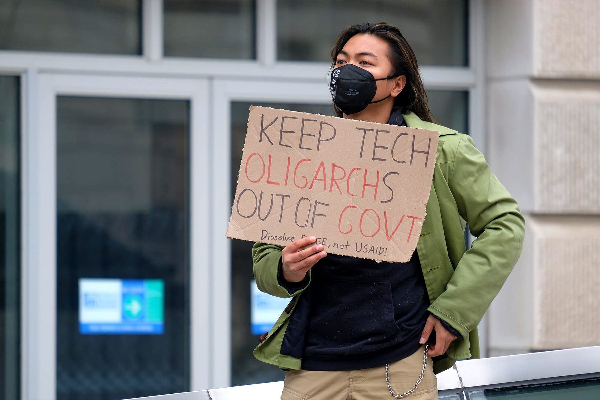 Concurrent protests sprung up across the city throughout the week, gaining momentum as news of Musk's actions escalated. On Tuesday, over a thousand people rallied outside the Treasury Department following reports that affiliates of his Department of Government Efficiency (DOGE) had potentially accessed bank account information and the payment system responsible for disbursing things like social security benefits and tax refunds. Following news of his intention to dismantle the American foreign aid agency USAID, large crowds gathered outside its headquarters and the U.S. Capitol. Further protests sprung up outside the Department of Labor when unions got word that workers had been ordered to comply with DOGE requests.