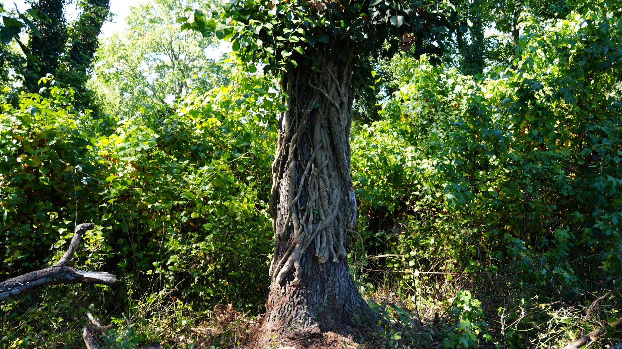 Invasive vines can be deadly for forests: when they wrap themselves around trees, they block light, nutrients, and water, and effectively strangle and starve their hosts. They don’t have natural predators here, so they can completely envelop a tree and make it susceptible to collapse during storms from their weight. (And that’s to say nothing of non-native trees, like the deceptively named tree of heaven.)
