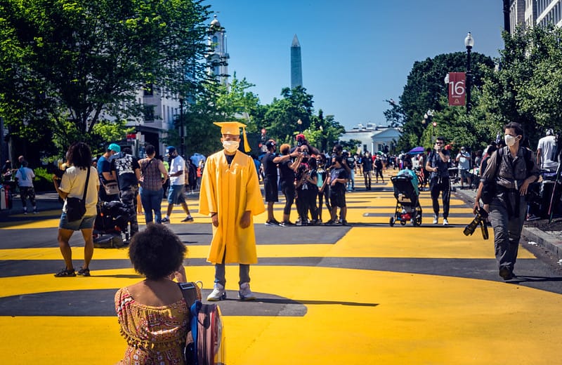 For some who agree with Bowser, it’s simple pragmatism. “I think it’s a pretty sensible decision,” Keyonna Jones told The 51st. She was one of the seven artists who helped paint the 35-foot-tall yellow letters on the roadway. “There’s a lot of things that need to take priority: a lot of people losing their jobs, a lot of resources the city may lose.”