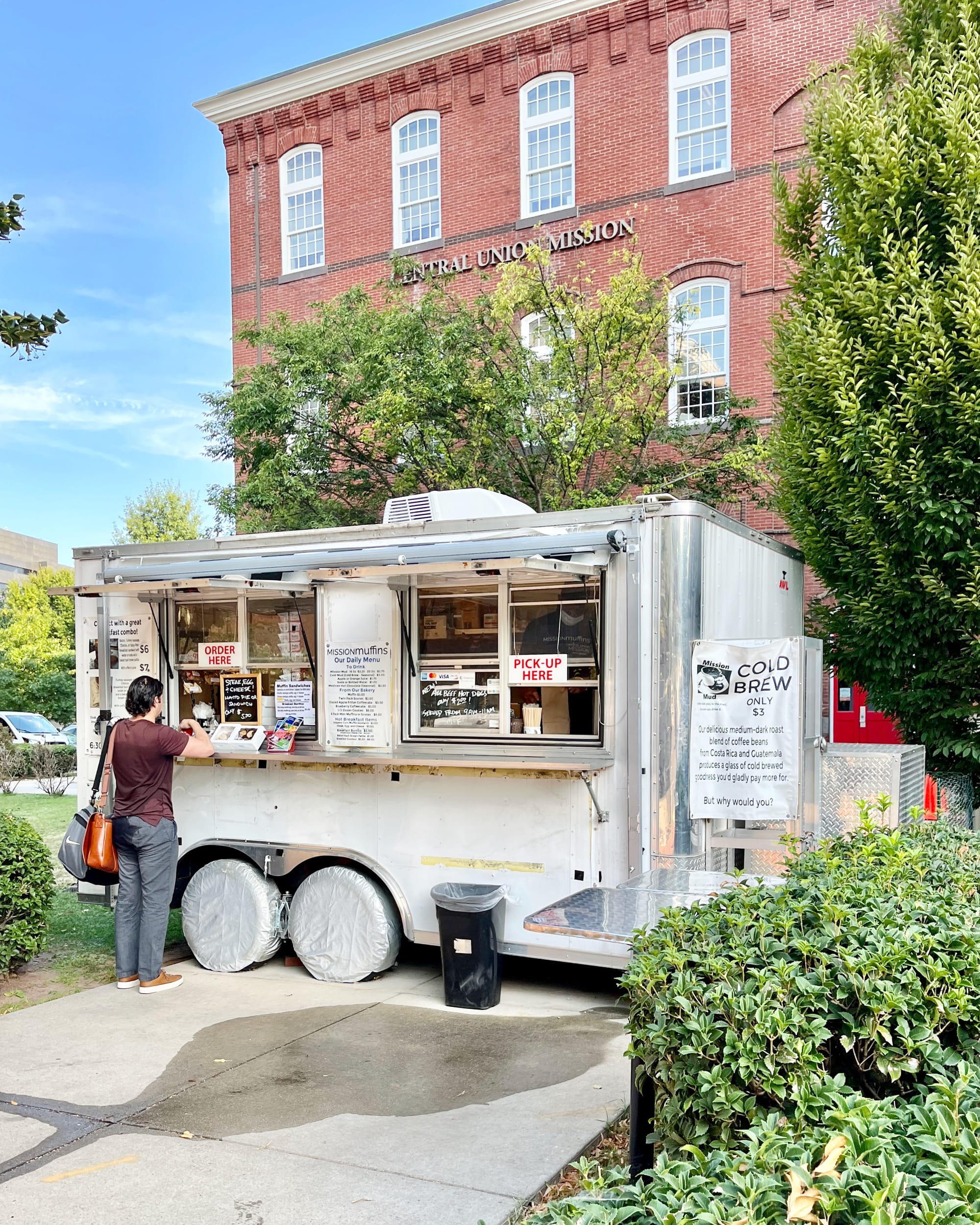 Outside Central Union Mission, a longstanding nonprofit organization, is a weekday muffin trailer that’s on a mission. They bake yummy muffins like chocolate chip, cinnamon, and apple while also providing job training. Mission Muffins sits in an area once called Swampoodle, an old neighborhood with a long tradition of charity.